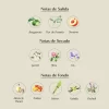Chants Tenderina te da la bienvenida con una explosión cítrica chispeante y refrescante. La naranja jugosa y dulce se combina con la vivacidad del limón, creando una apertura luminosa y energizante. Un toque de grosella negra añade una dulzura afrutada ligeramente ácida que despierta los sentidos y aporta un carácter juguetón a la composición.