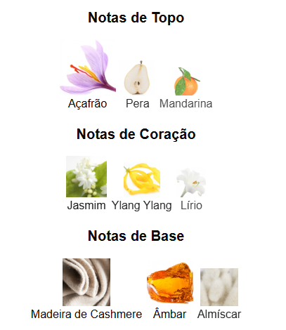 - Fondo amaderado, dulce, balsámico y persistente con sándalo, almizcle, vainilla y resinas dulces.